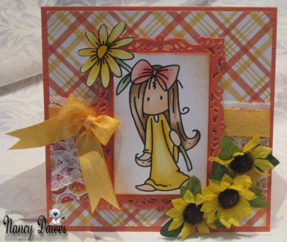 Gorgeous card Nancy. I agree, definitely a sunflower she's holding!